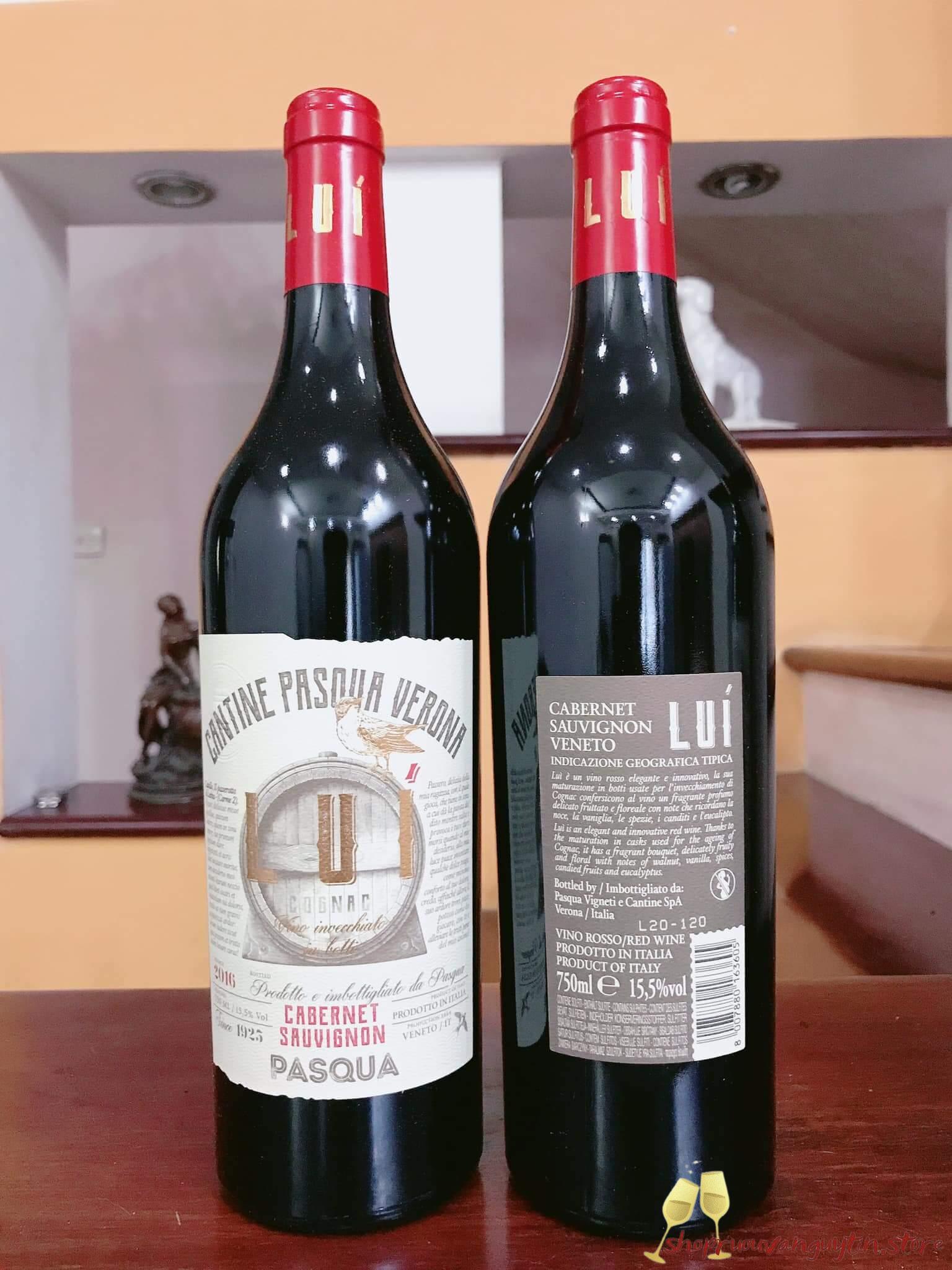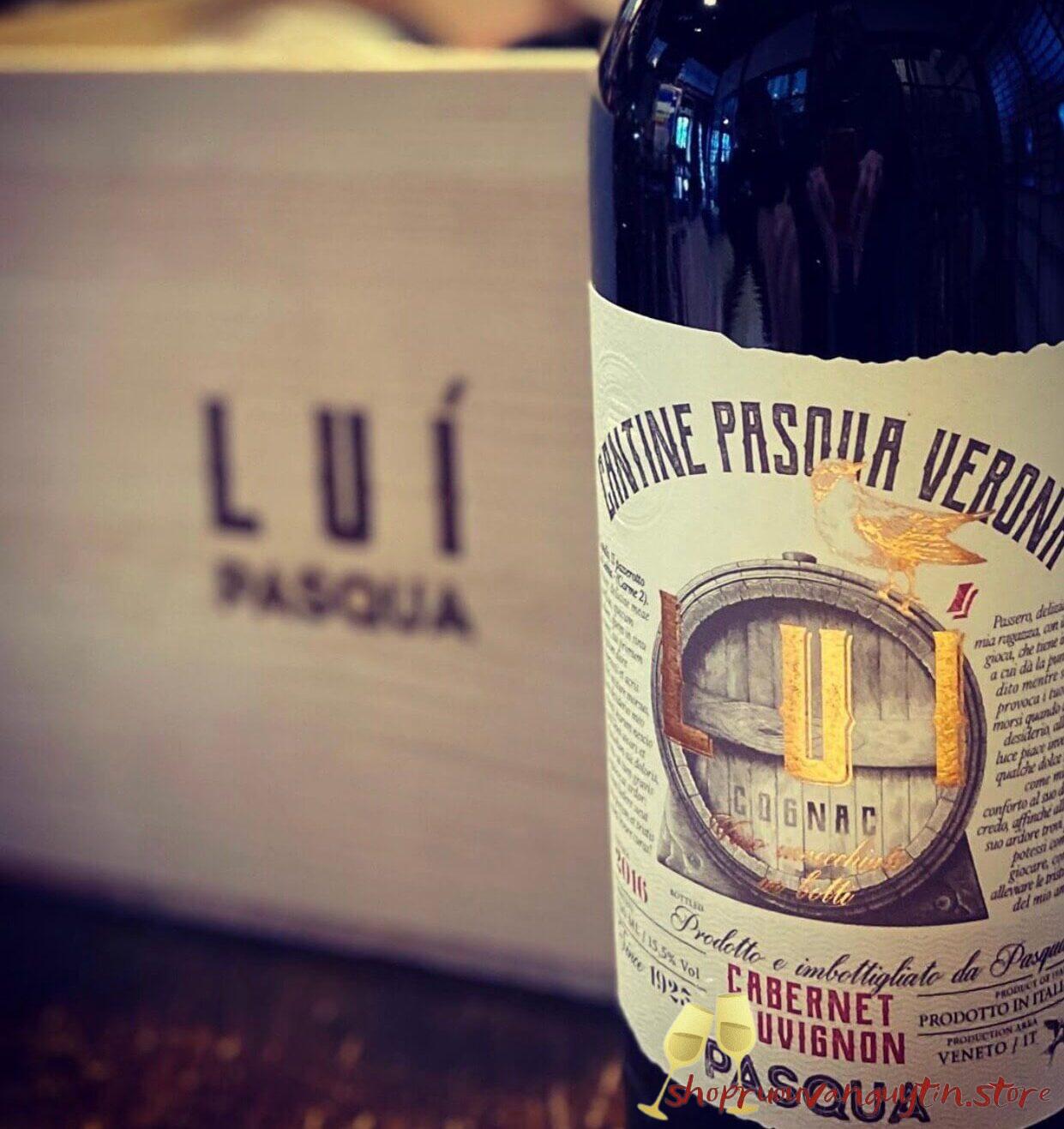 - Pasqua đã tạo ra một biểu tượng mới mang tên LUI, kết hợp nho Cabernet Sauvignon và nho Corvina chín hoàn hảo từ những vườn nho ở Veneto. 50% nho Cabernet Sauvignon được làm khô một phần trước khi phối trộn với nho Corvina và phần nho Cabernet còn lại.